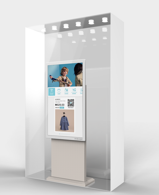 纯平面设计,光学水晶镜面,支持WIFI/蓝牙联网、智能接口、多款智能应用,适用于服饰美妆等品牌连锁实体。